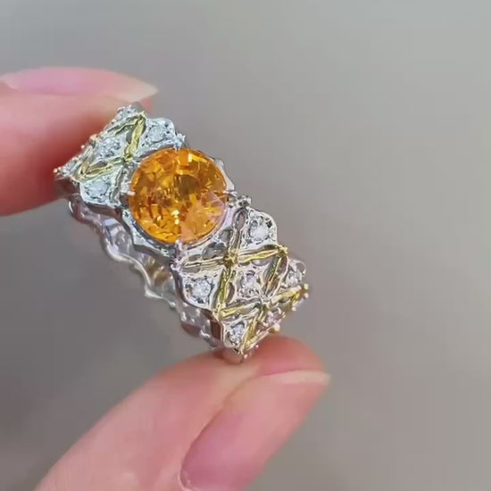 Radiating the brilliance of sunlight, this exquisite ring features a 1.75ct natural Fanta stone (spessartine garnet) in a vivid orange-yellow hue. Its crystal clarity and dazzling fire capture the essence of energy and elegance — glowing like a sunset flame upon the hand.